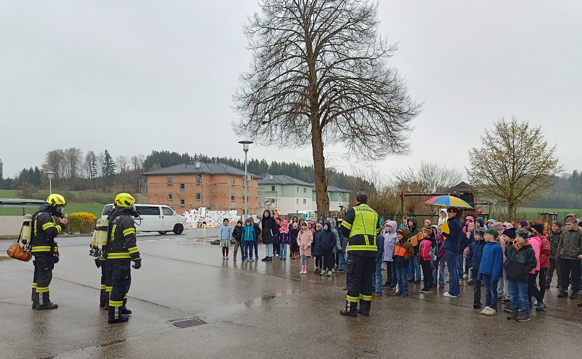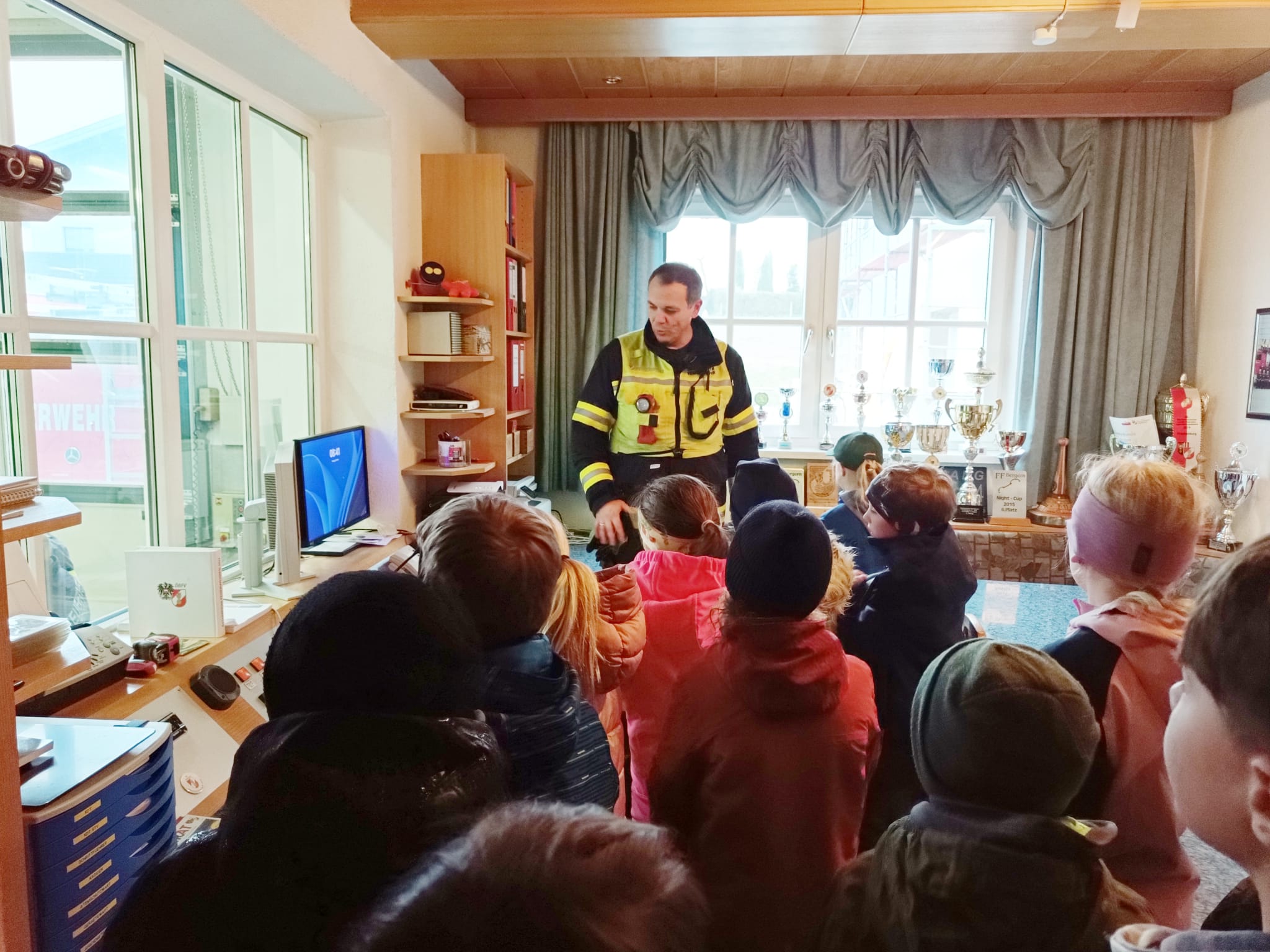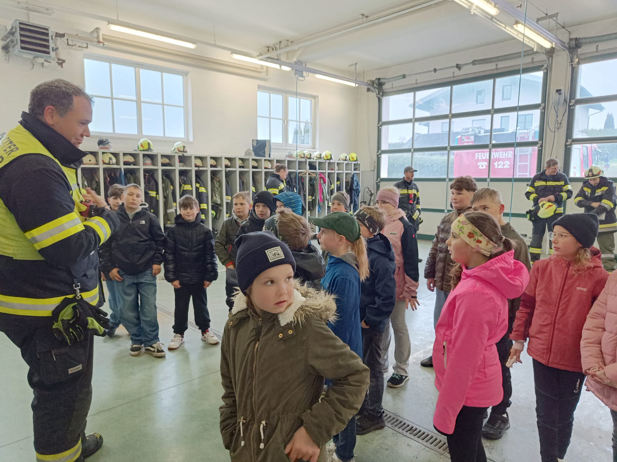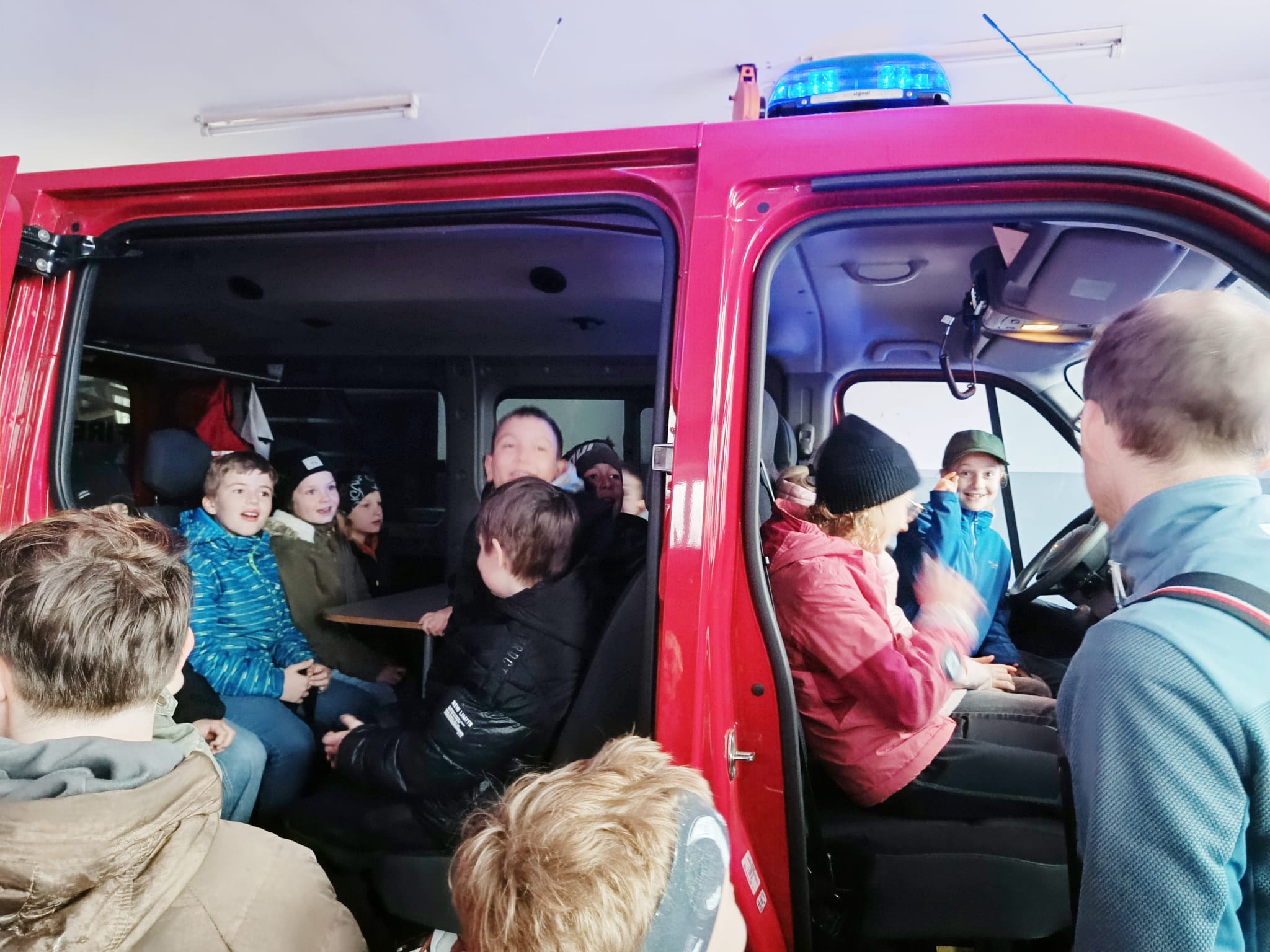 Anschließend durften die SchülerInnen der 4. Klasse noch das Feuerwehrhaus besuchen, in dem sie eine Führung und eine Fahrt mit den Feuerwehrautos zurück zur Schule bekamen.