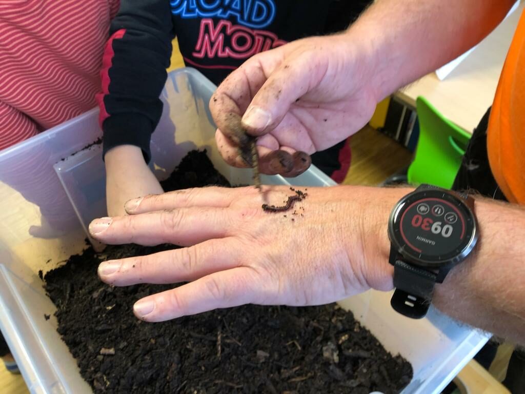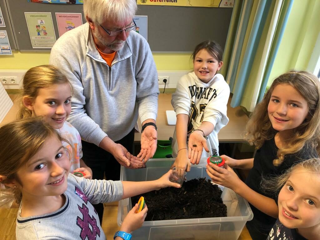 Am 20. Oktober besuchte Herr Erich Kappes vom Bezirksabfallverband Vöcklabruck die Schülerinnen und Schüler der 4. Klasse. Anhand der Geschichte von Schmatzi, dem Kompostwurm, lernten die Kinder viel über richtiges Kompostieren und über die Lebewesen, die dabei behilflich sind. Es durfte auch selbst in der Erde gewühlt werden! Danke für das tolle Angebot!