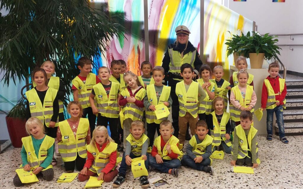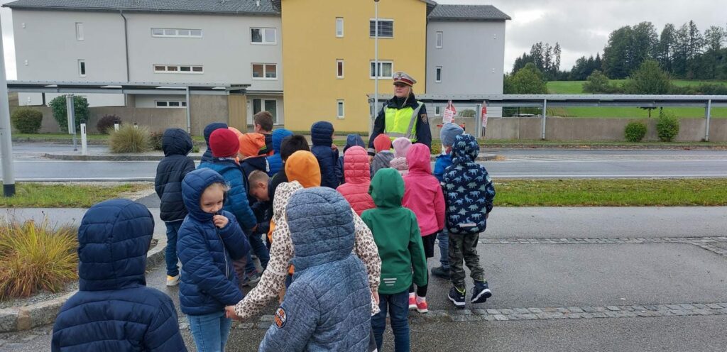 Verkehrserziehung 1. Klasse September 21, 2022 Juni 29, 2025 / Von Daniela Mühlleitner / 1. Klasse, Uncategorized / Kommentar verfassen Am Montag, den 19. September 2022, besuchte die 1. Froschklasse eine Polizistin der Polizeiinspektion Schwanenstadt. Die Polizistin erklärte wichtige Verkehrsregeln für SchulanfängerInnen. Schließlich erhielten alle Kinder eine Warnweste.
