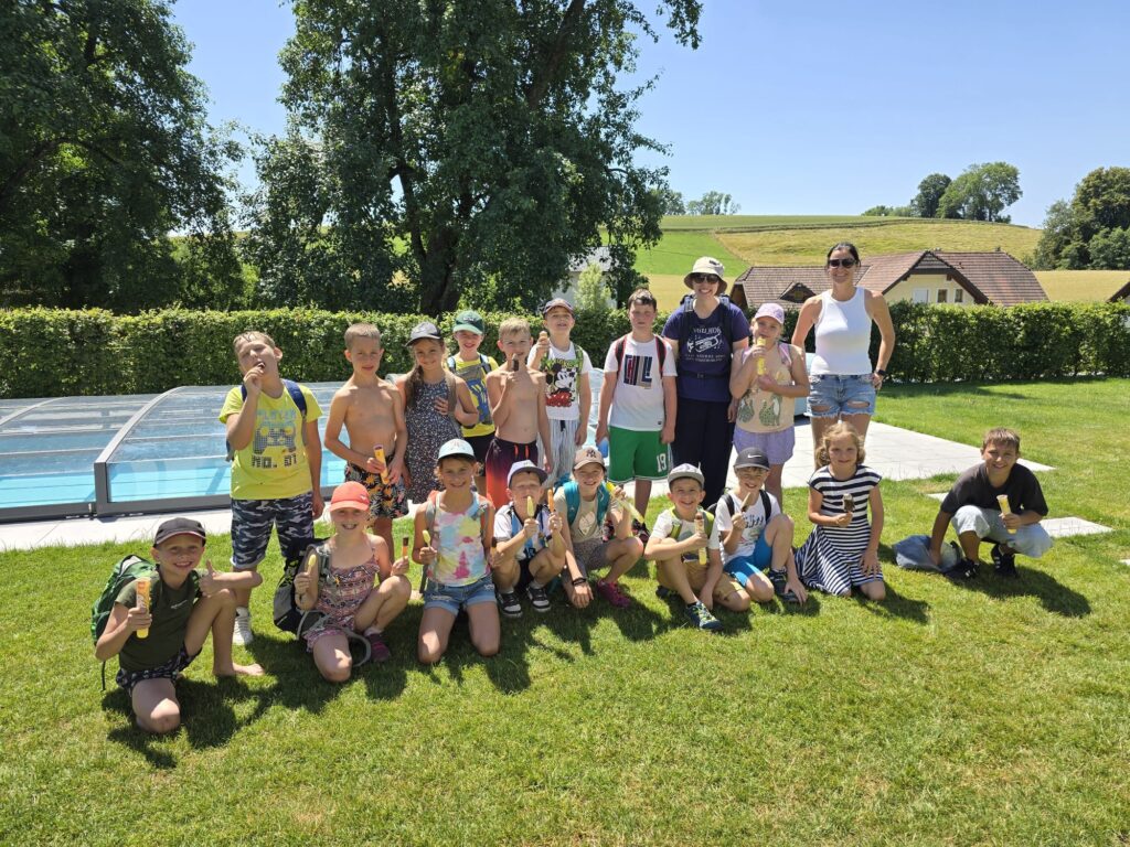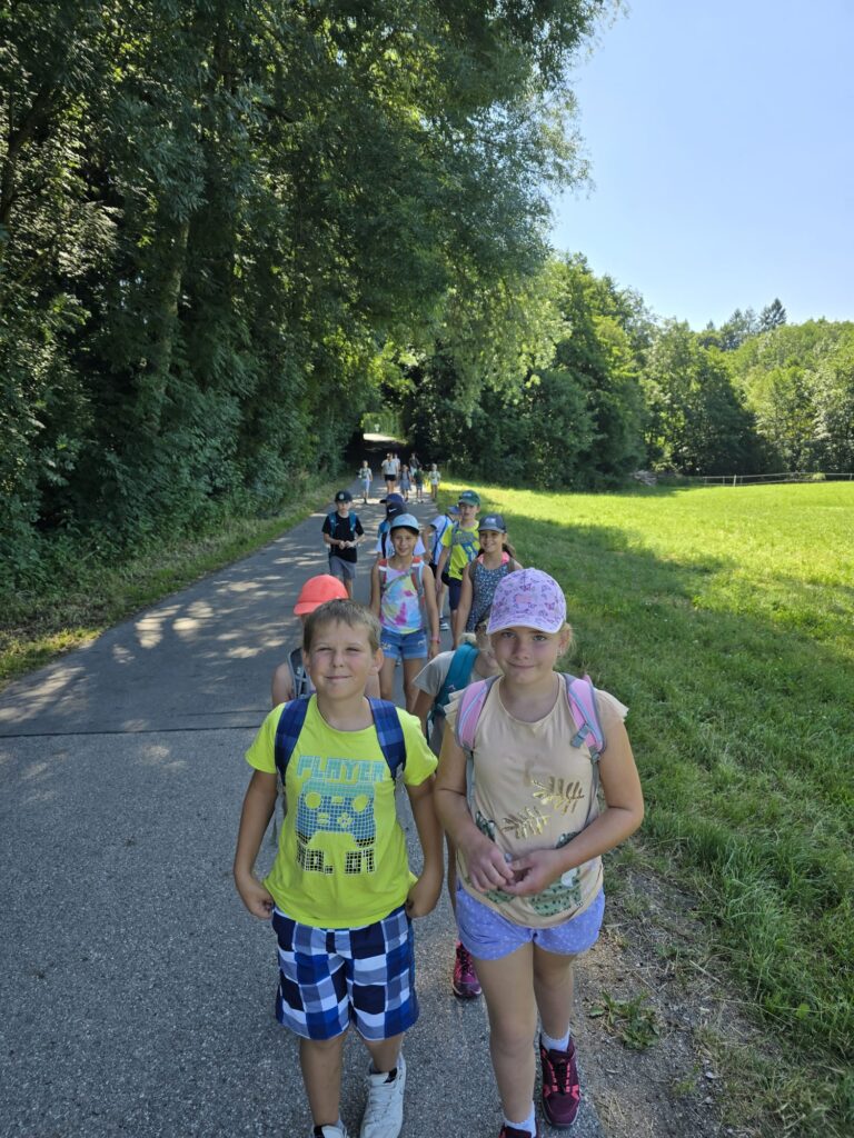 Zum Schulschluss machte sich die 3. Froschklasse am 1. Juli 2025 bei strahlendem Sonnenschein und sommerlichen Temperaturen  auf den Weg zu einem Wandertag durch Atzbach – mit einem tollen Ziel! Wir erhielten eine Einladung von Familie Eckstein in Baumgarting – dafür möchten wir uns ganz herzlich bedanken! Am Ziel angekommen, erwartete uns eine fröhliche Gartenparty mit allem, was das Sommerherz begehrt: Wasserschlauch, Rasensprenger, kühles Eis, frisches Obst und jede Menge Spaß. Es war ein großartiger Tag voller Lachen, Spielen und fröhlicher Gemeinschaft – ein schöner Abschluss für ein gelungenes Schuljahr!