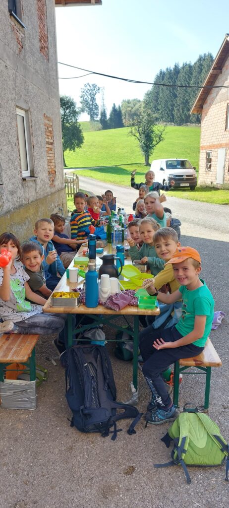 Die 2. Froschklasse erhielt eine Einladung von Familie Vorhauer, deswegen veranstaltete die Klasse einen Wandertag nach Seiring zur Besichtigung des Bauernhofs. Bei herrlichem Herbstwetter wanderten die SchülerInnen der 2. Klasse voller Motivation durch Atzbach, über Aigen nach Seiring. Die Kinder hatten große Freude bei der Besichtigung, beim Streicheln und Füttern der Tiere, beim Spielen am Gelände und vielem mehr. Vielen herzlichen Dank an die Begleitpersonen und vor allem an die Familie Vorhauer für die tolle Einladung!